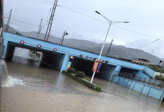 經(jīng)過現(xiàn)場察看,由于短時間降雨量太大,龍津河水位暴漲高于通道出口頂標(biāo)高,河水倒灌至下穿通道導(dǎo)致交通中斷下穿通道水泵房三臺水泵全部啟動抽水也無法滿足排水要求。公司防汛小組到達(dá)現(xiàn)場后,連夜組織人員拉好警戒線,設(shè)置警示標(biāo)志,防止車輛進入下穿通道,并調(diào)度4輛應(yīng)急車輛及時排水并清洗路面;同時,提前與鐵路部門、交警部門聯(lián)系,暫時封閉該段線路。經(jīng)過6小時的不斷抽水,路面已基本暢通,搶險過程未發(fā)生任何險情和人員傷亡。