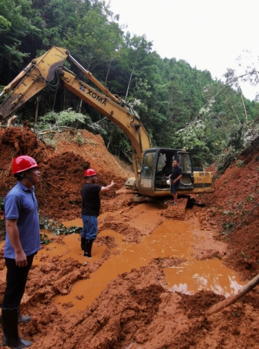 對搶險(xiǎn)人員來說,最困難的不是清淤,而是5臺(tái)挖掘機(jī)、4臺(tái)拖車的加油問題,由于道路還未暢通,機(jī)械無法到達(dá)指定場所加油,當(dāng)?shù)赜譄o加油車,如果無法加油,機(jī)械很快就將停工,救援人員已經(jīng)做好一桶一桶“手動(dòng)”拎汽油的準(zhǔn)備。為解決加油問題,市政集團(tuán)黨員代表與巖前鎮(zhèn)政府多次溝通,共同協(xié)調(diào)從廣東廣福鎮(zhèn)安排加油車到達(dá)受災(zāi)點(diǎn)為機(jī)械進(jìn)行加油,解決了現(xiàn)場機(jī)械供能問題。