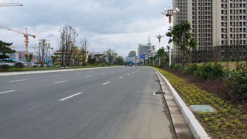 道路長約1000米,寬78米,雙向八車道,采用改性瀝青路面,總投資2.16萬元。
