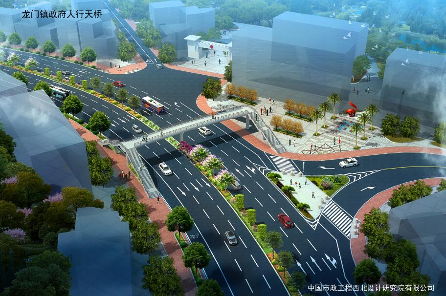 龍門(mén)鎮(zhèn)人民政府人行天橋位于羅龍西路龍門(mén)鎮(zhèn)人民政府西側(cè)約80米處,采用鋼結(jié)構(gòu)連續(xù)梁,腹板為圓弧形,主梁全長(zhǎng)44.8米,寬4.0米。梯道坡度1:2,兩側(cè)長(zhǎng)分別為16.9米、15.7米,寬2.8米,總投資約400萬(wàn)元。
