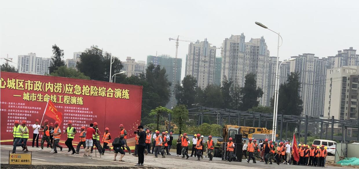 龍巖大道與工業(yè)路交叉口立交工程開展市政(內(nèi)澇)應急搶險綜合演練