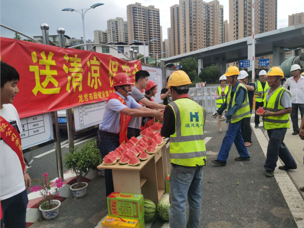 “弟兄們,來吃西瓜、喝涼茶”7月3日大中午,龍巖市政集團(tuán)組織的黨員、志愿者們?yōu)槲玳g在項(xiàng)目現(xiàn)場暫時(shí)休息的一線工人們獻(xiàn)上一塊塊甘甜可口西瓜。這是該公司針對近來天氣悶熱特意為一線職工開展的“走項(xiàng)目、送清涼、保安全”活動。班子成員兵分幾路分別帶隊(duì)前往龍巖大橋、浮東路、羅橋節(jié)點(diǎn)和龍巖大道二期等重點(diǎn)項(xiàng)目,為現(xiàn)場一線的工人們發(fā)放了西瓜、王老吉和菊花茶等防暑降溫食品,對廣大在一線的員工克服天氣影響,堅(jiān)守崗位認(rèn)真工作表示感謝!