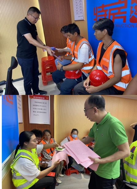 黨支部書記、副董事長、總經(jīng)理孔華以講座形式深入淺出向項目部管理人員及一線工人上了一堂精彩的“人人講安全 個個會應(yīng)急專題課,并進(jìn)一步要求在建項目要緊緊圍繞“安全生產(chǎn)月”活動主題內(nèi)容,完善安全管理制度,落實安全生產(chǎn)責(zé)任,加大安全教育宣傳力度,提高施工現(xiàn)場的防范、應(yīng)急自救能力,并鼓勵現(xiàn)場一線工人積極舉報身邊的安全生產(chǎn)事故隱患和各類非法違法生產(chǎn)建設(shè)經(jīng)營行為。