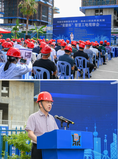 為推動我市房屋市政工程智慧工地建設(shè),促進(jìn)建筑施工企業(yè)質(zhì)量安全管理標(biāo)準(zhǔn)化、信息化、智能化發(fā)展,7月20號上午,由市住建局和城發(fā)集團(tuán)主辦,市政集團(tuán)及福建九鼎集團(tuán)共同承辦的全市智慧工地觀摩會在龍欣小區(qū)安置房二期Ⅱ標(biāo)段項(xiàng)目舉辦,市住建局二級調(diào)研員王健蒞臨觀摩會致辭,市住建局、城發(fā)集團(tuán)及所屬企業(yè)相關(guān)工程技術(shù)人員約100人參加。觀摩會還吸引了來自龍巖市建筑業(yè)協(xié)會、龍巖市工程建設(shè)質(zhì)量安全管理協(xié)會、福建船政交通職業(yè)學(xué)院等有關(guān)專家到場指導(dǎo)。